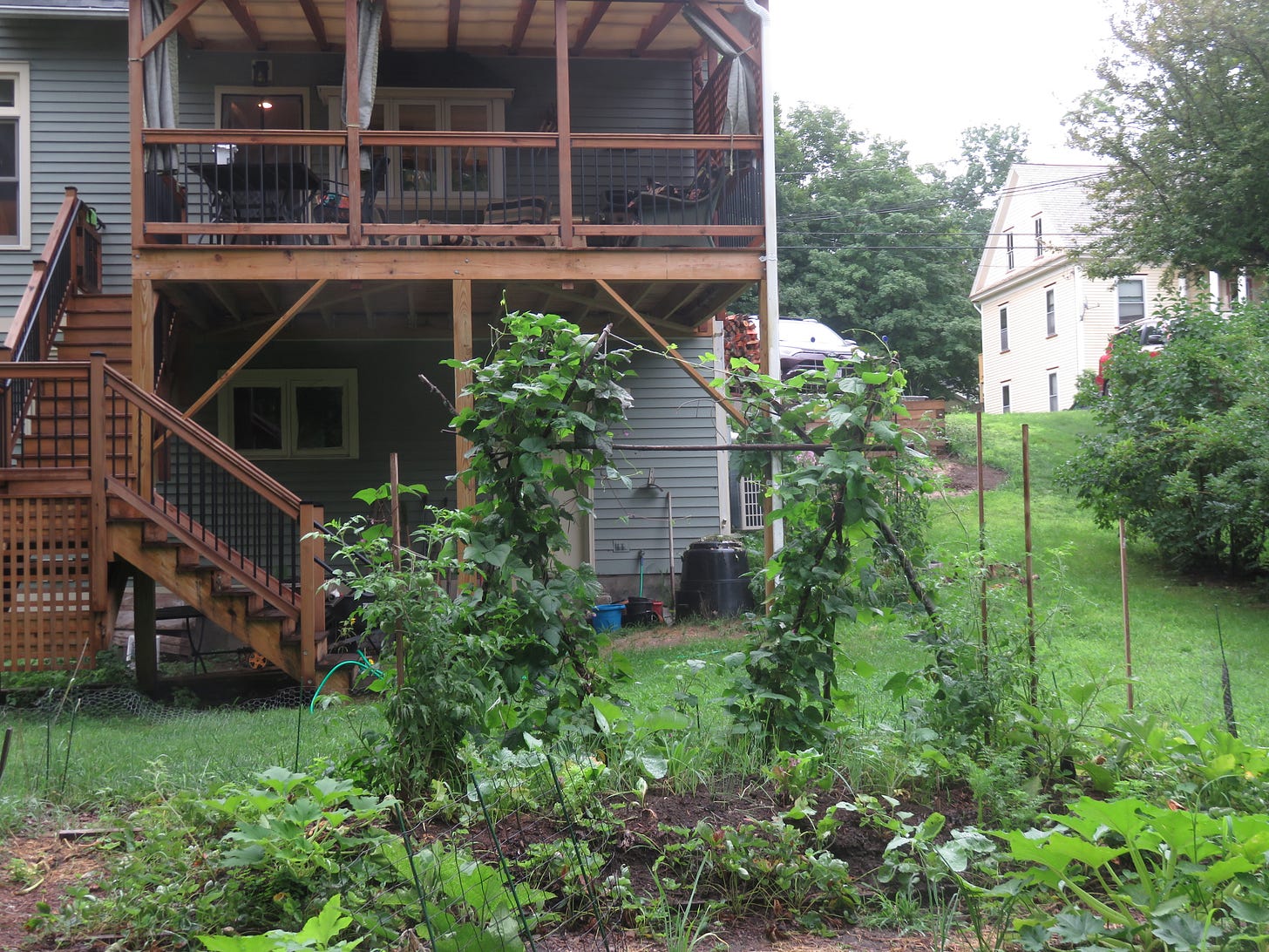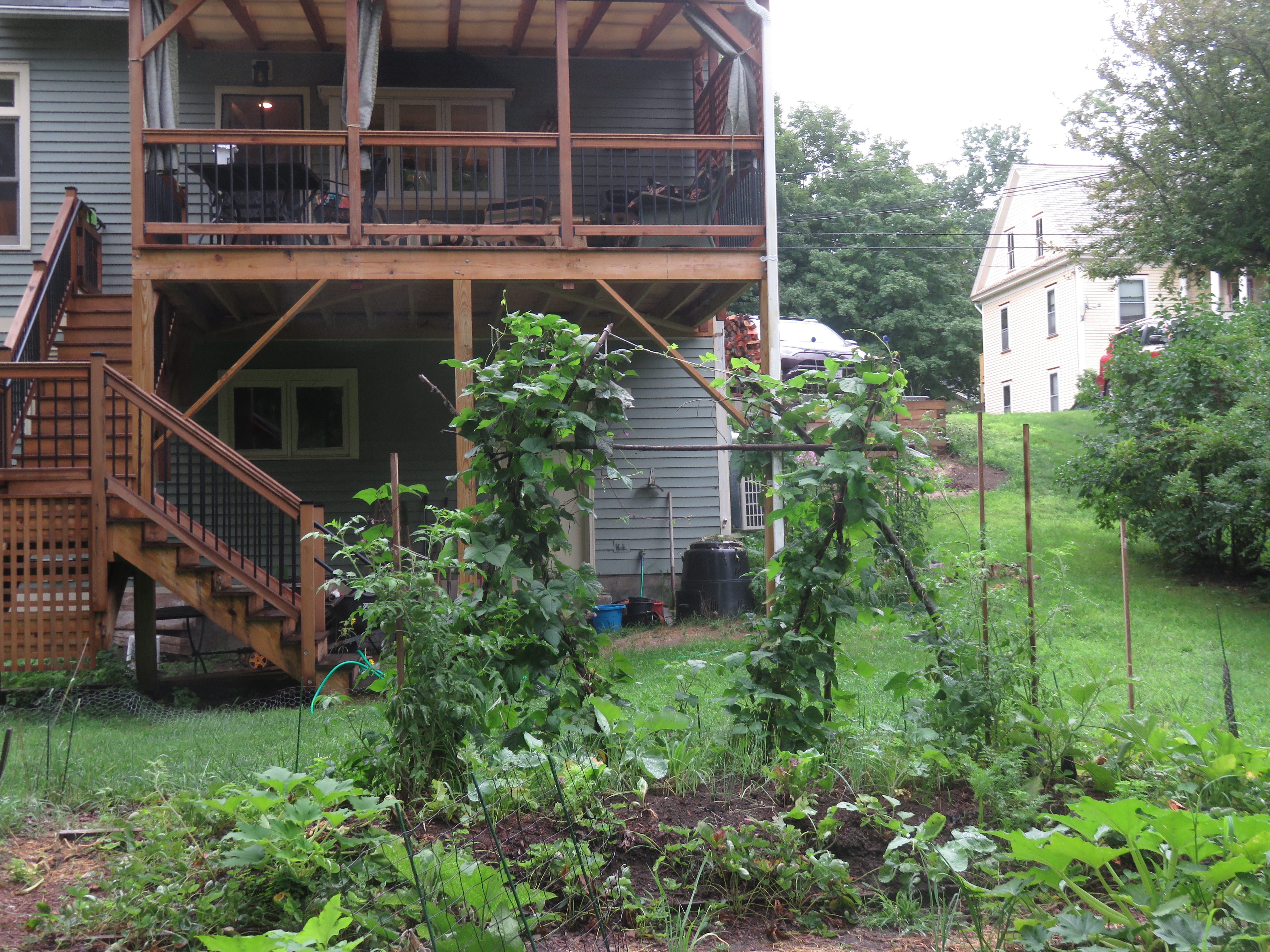 They were all doing great, just as pole beans should, each wrapping themselves around the poles getting good holds, using them to move higher and higher — it was all very exciting.