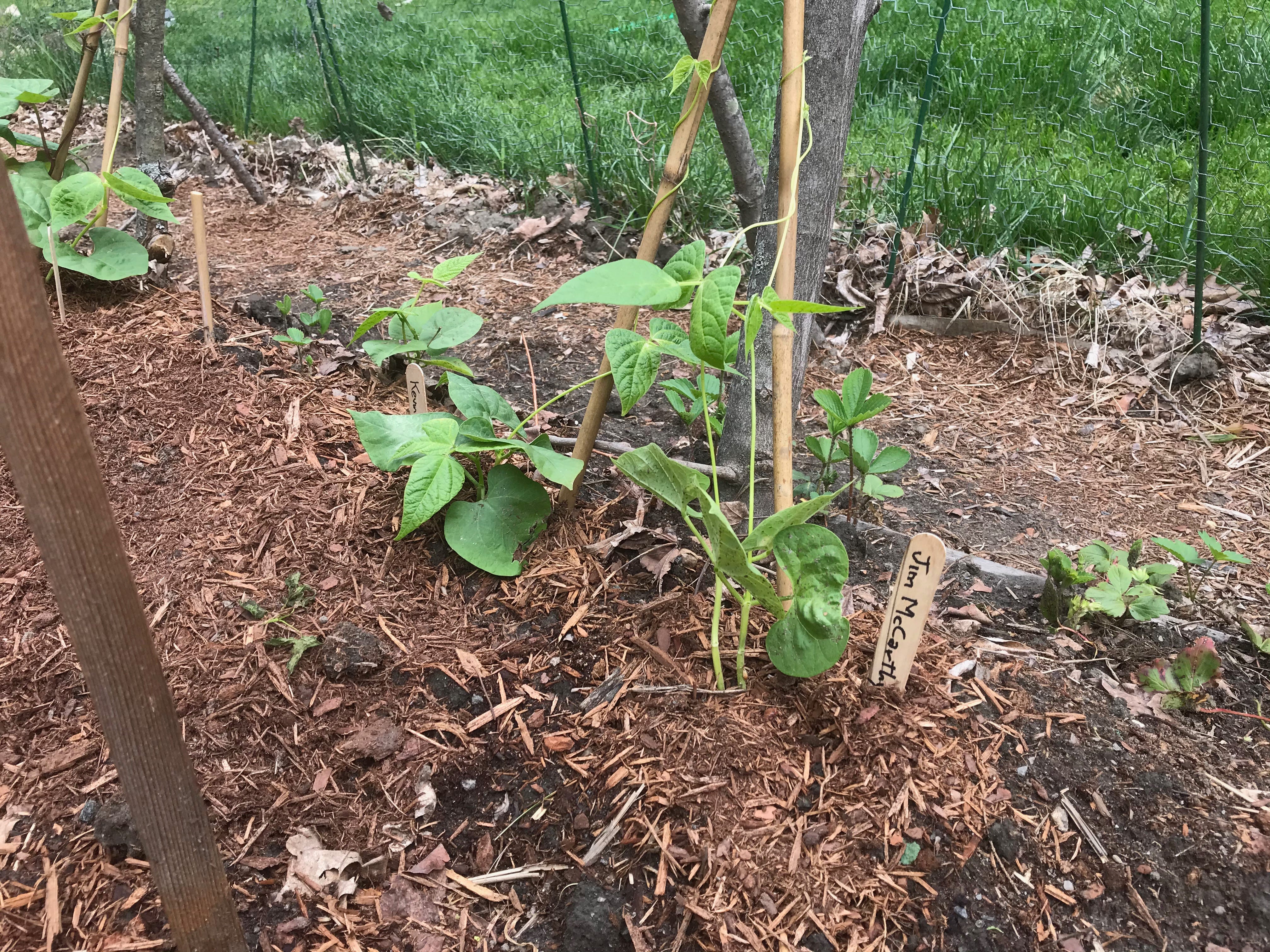 Now I used to be a rock climber and I thought it would be fun to name the plants after famous climbers and see which one got to the top of its pole first. I labeled each of the plants.